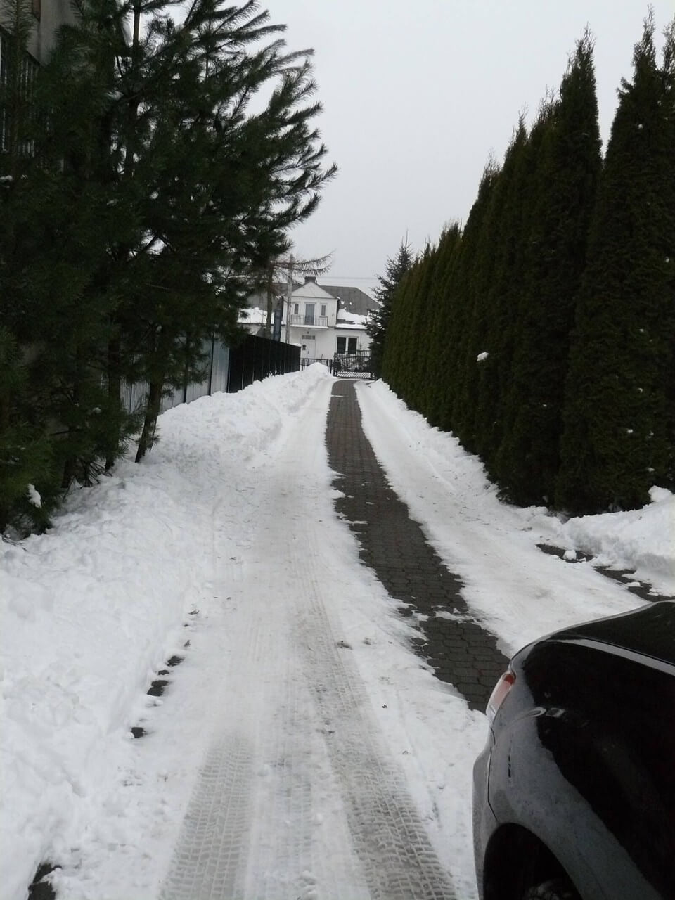 Tak wygląda 70 metrów świeżo odśnieżonego dojazdu o szerokości 2 metrów do obsługi 4 działek - pozostałe 180 m pokrywa jeszcze gruby śnieg!